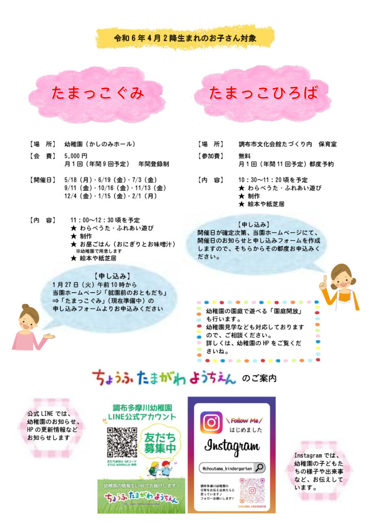 令和8年度のたまっこぐみ・たまっこひろばのご案内です。