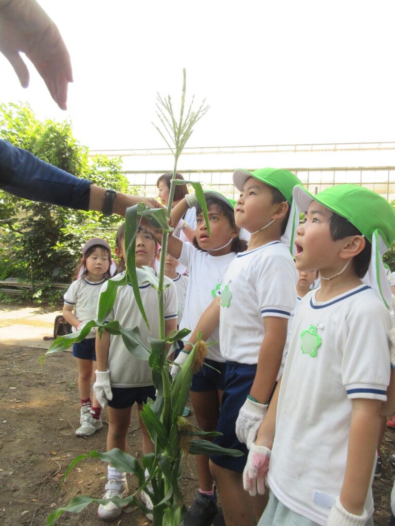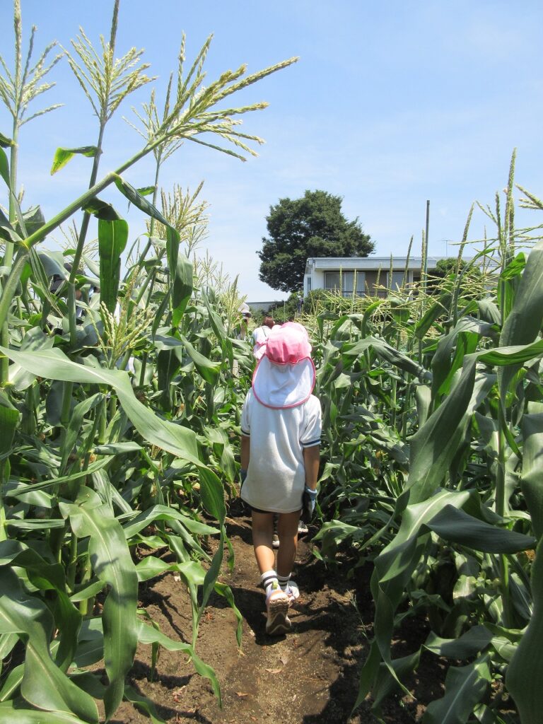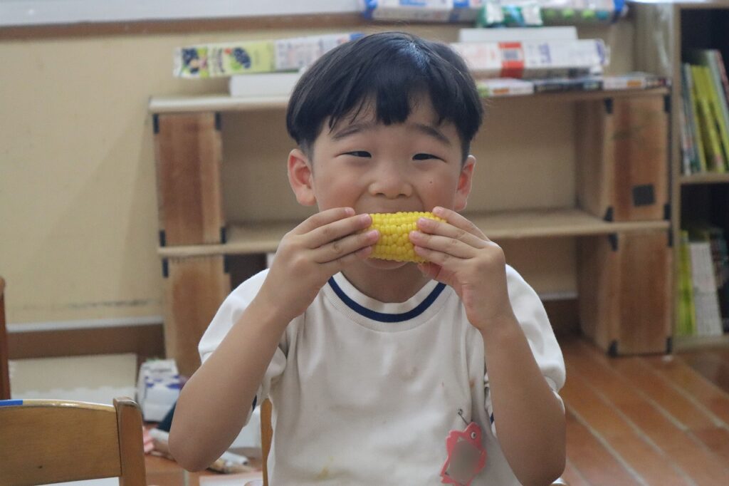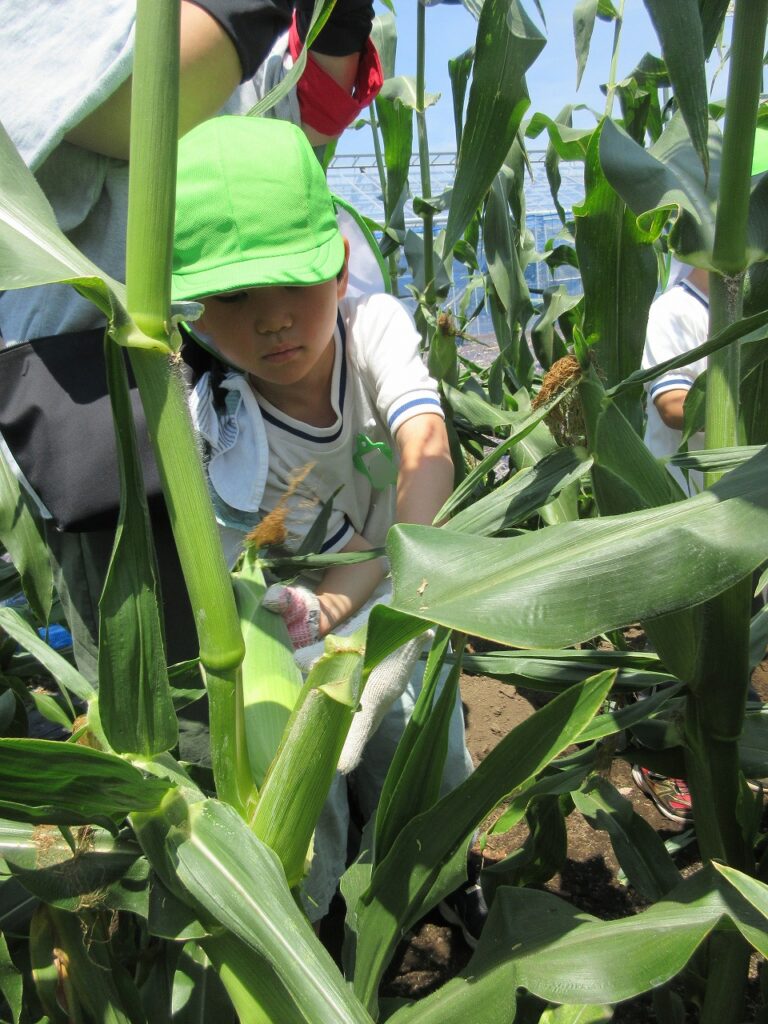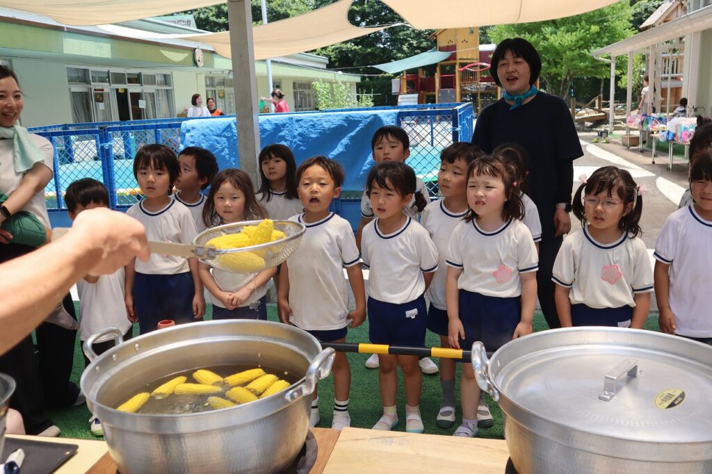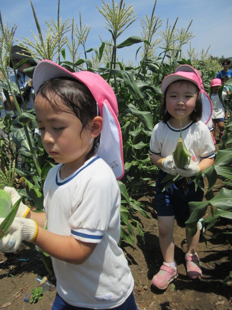 年長の子どもたちが、4月に種をまいたとうもろこしが、収穫の時期をむかえました。