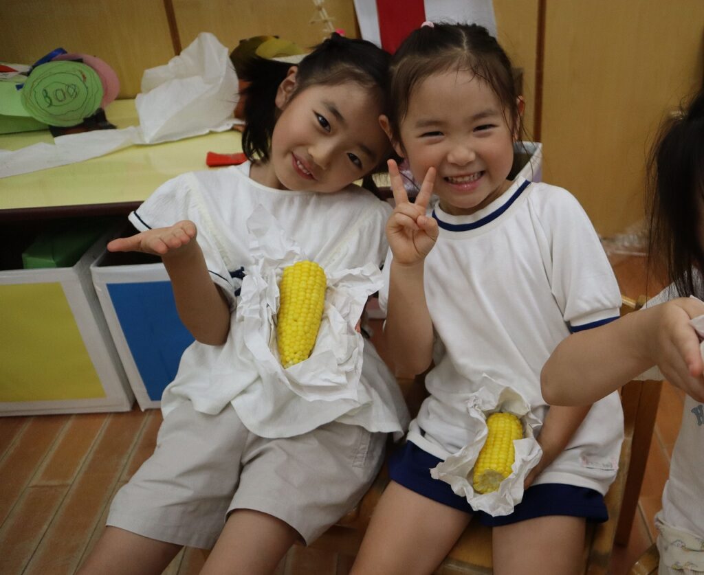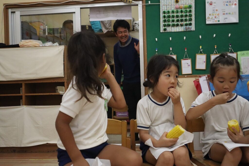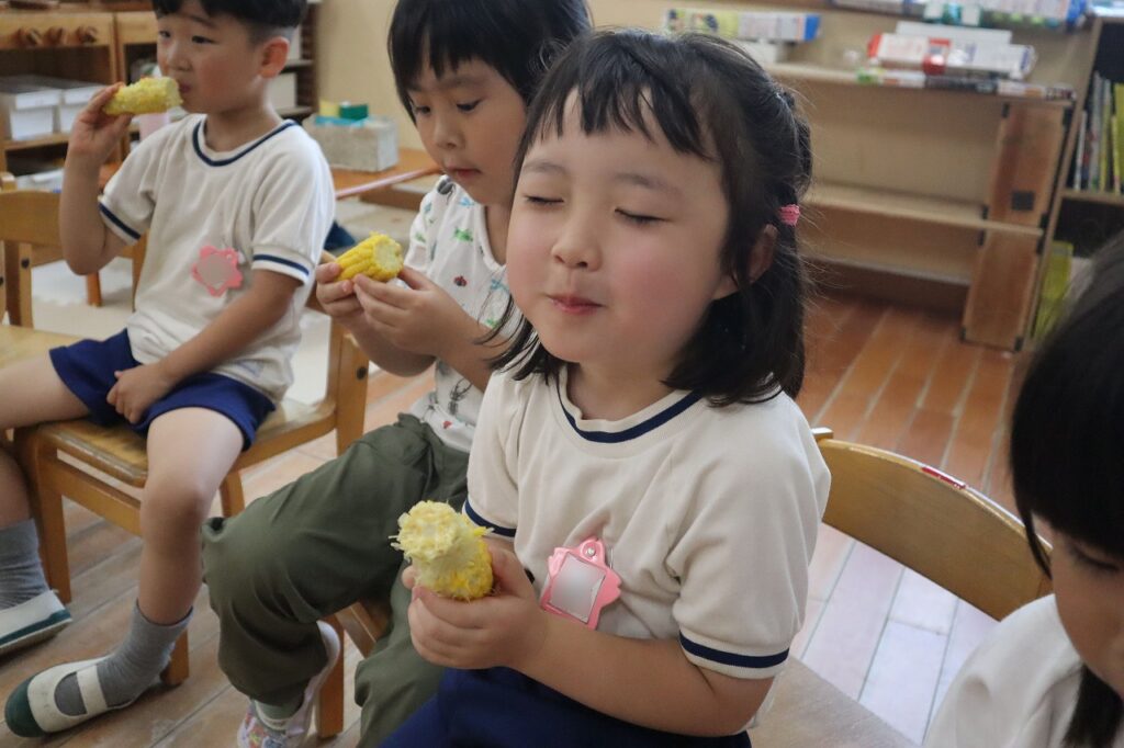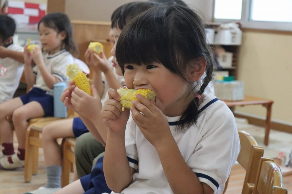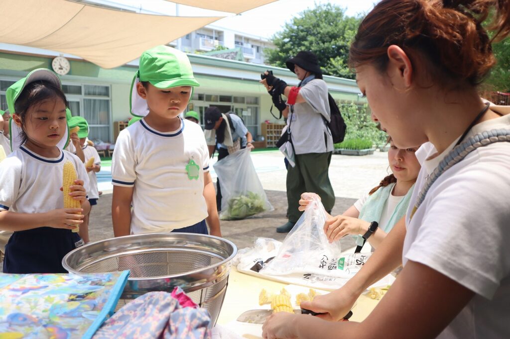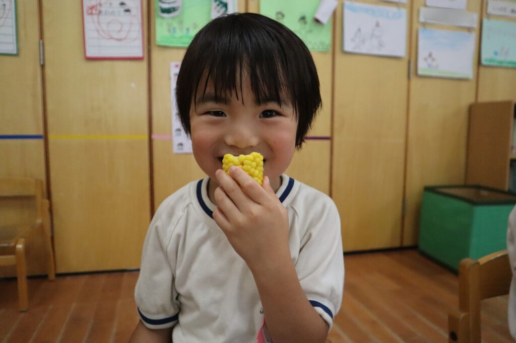 年長の子どもたちが、4月に種をまいたとうもろこしが、収穫の時期をむかえました。