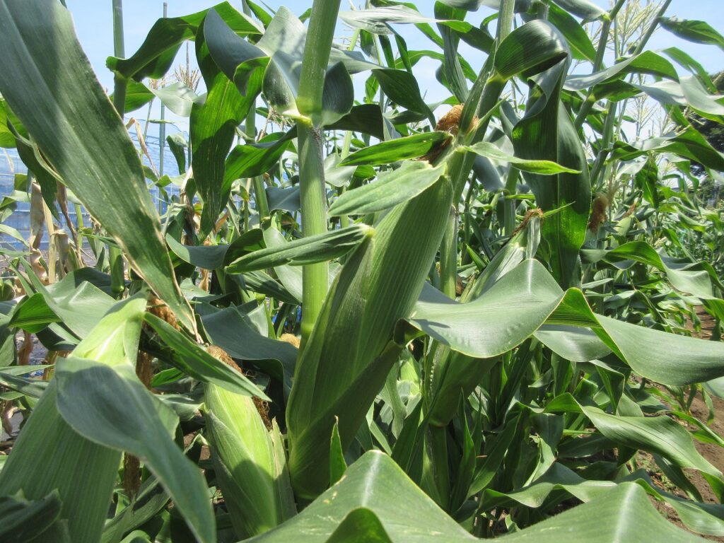 何度かお散歩に行って見に行っていたとうもろこしですが、今日さらに背も高くなり、実もしっかりついていました。