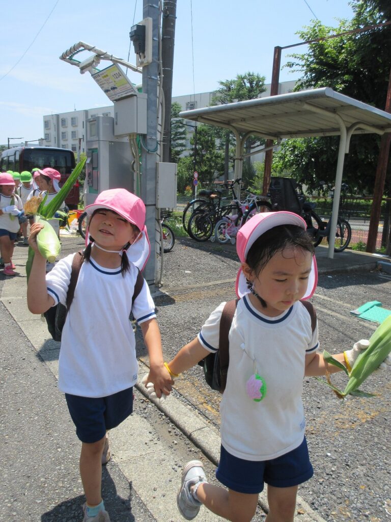 「おいしさ~、にげないで~」ととうもろこしの根元に話かけながら急いで帰りました。