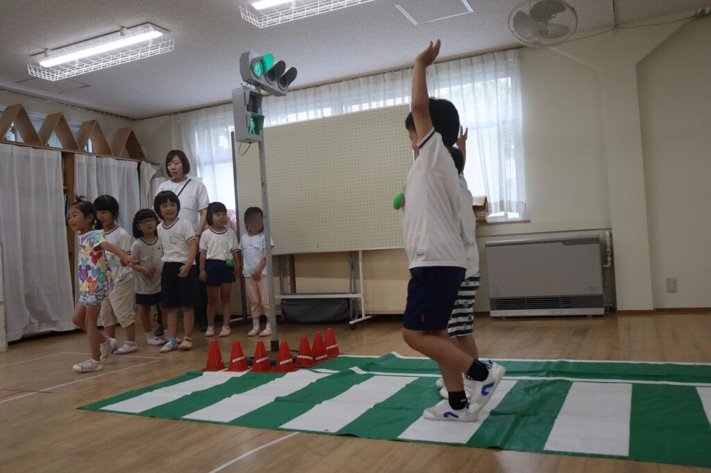 ホール内で信号機や横断歩道を使って、練習をしました。