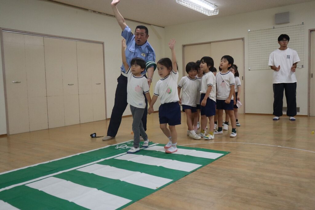 全体でお話をしてもらった後は、年長さんだけ歩行訓練。