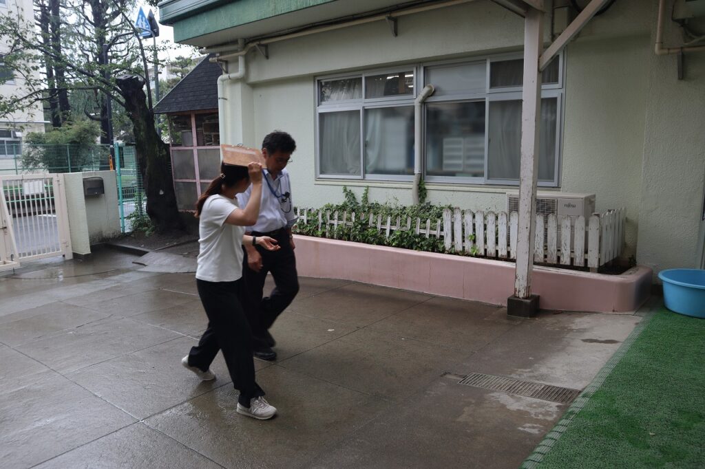 はじめに、不審者が入り込んだら、どのように対応したら良いかを、少しだけお話して頂き、その後実際の状況を想定して訓練を行いました。